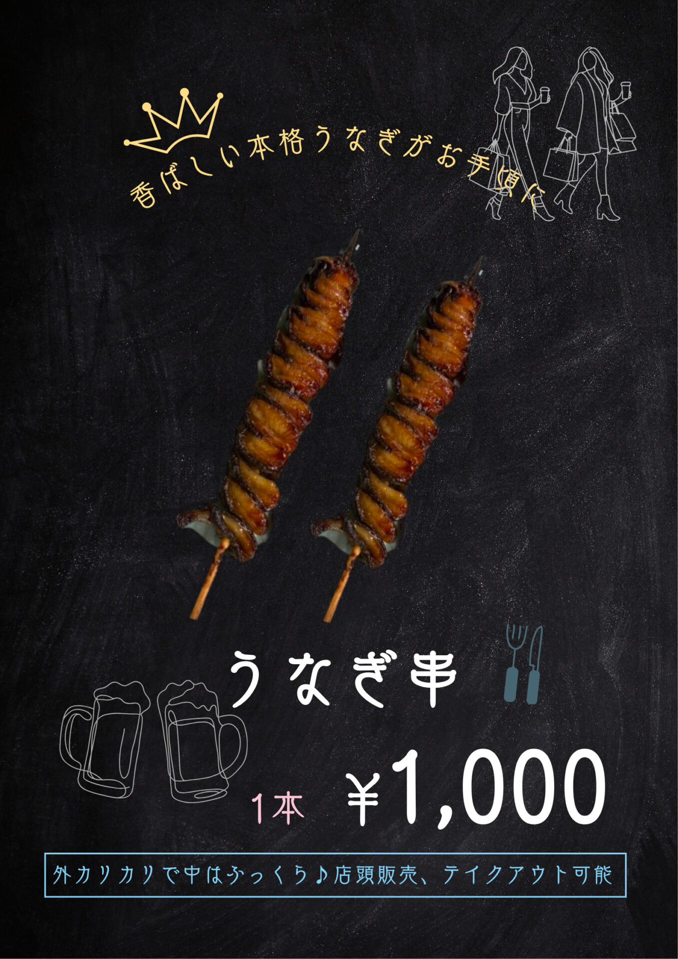 香ばしい一品!!しかも1本1,000円で本格的なうなぎがお手頃に食べれます!